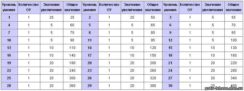 Увеличивает Физическую атаку персонажа в соответствии с приведенной ниже таблицей